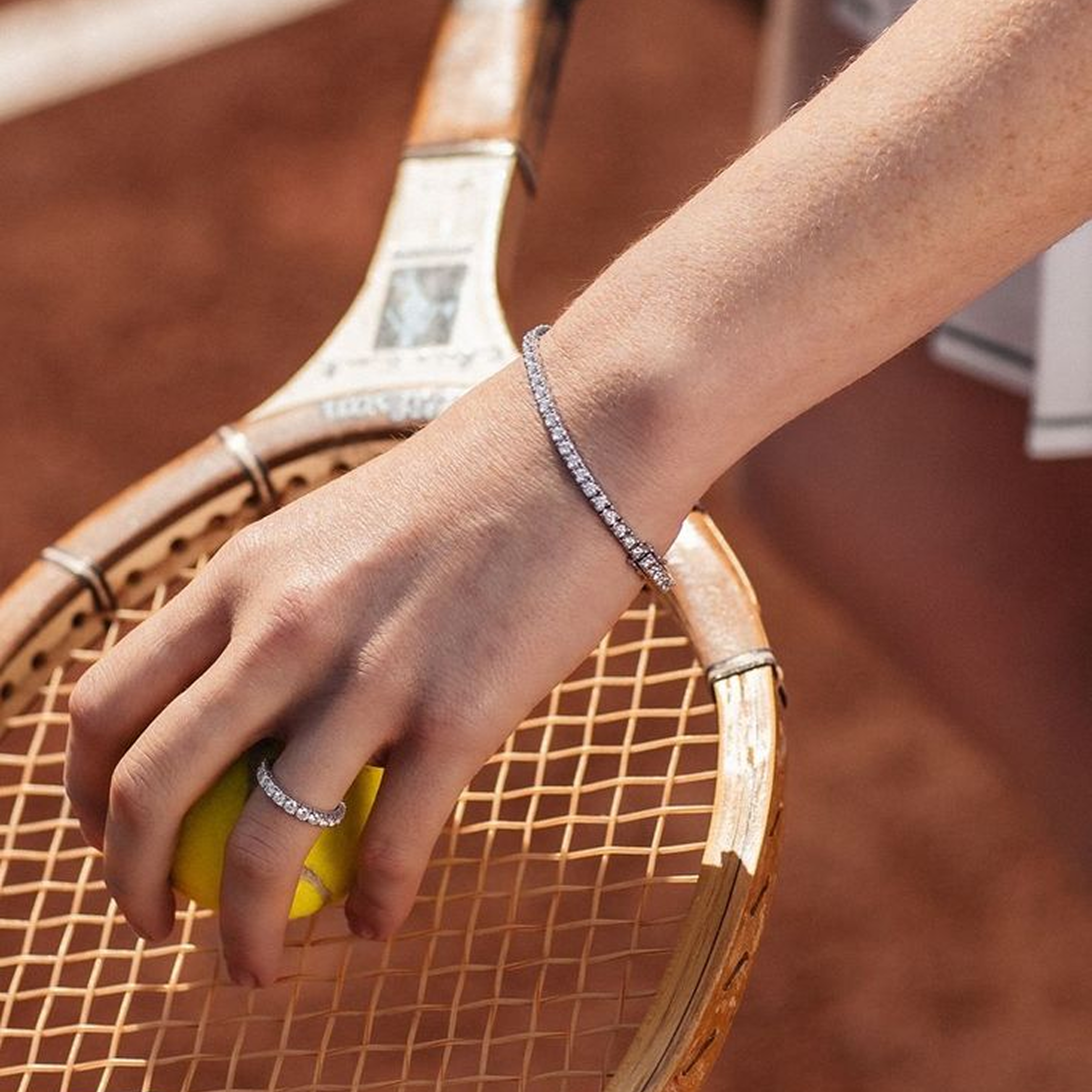 Een tennisarmband is een tijdloos sieraad dat is gezet met diamanten of edelstenen die helemaal om de pols lopen. Het ontwerp van een tennisarmband wordt gekenmerkt door de flexibele structuur, waardoor hij elegant om de pols valt en zorgt voor comfort tijdens langdurig dragen. De stenen zijn meestal uniform van formaat, waardoor een continue lijn van sprankeling ontstaat die een aandachtstrekkend effect creëert. Hun simplistische maar verfijnde ontwerp maakt ze geschikt voor dagelijks gebruik en speciale gelegenheden.